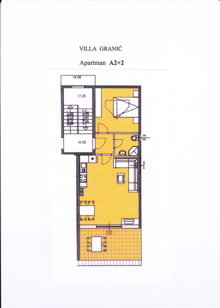 A2+2 (apartman za dvije osobe plus dva pomoćna ležaja) - Površina: 45m2